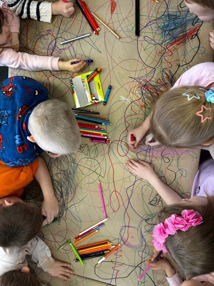 Serce popołudnia biło w rytmie teatrzyku Kamishibai - dzieci oglądały opowieść “O gąsienicy, która chciała zostać motylem”, gdzie drewniana skrzynka i ilustracje wciągały wyobraźnię równie skutecznie jak książka. Po części opowiadanej przyszła pora na ruch przy stole - mali uczestnicy tworzyli jedną, wielobarwną pracę plastyczną, korzystając z kolorowych mazgajów. Ta wspólna aktywność pokazała, że kontakt z książką może zaczynać się od zabawy, a bibliotekę łatwo przemienić w twórcze laboratorium pomysłów 🙂🎨.