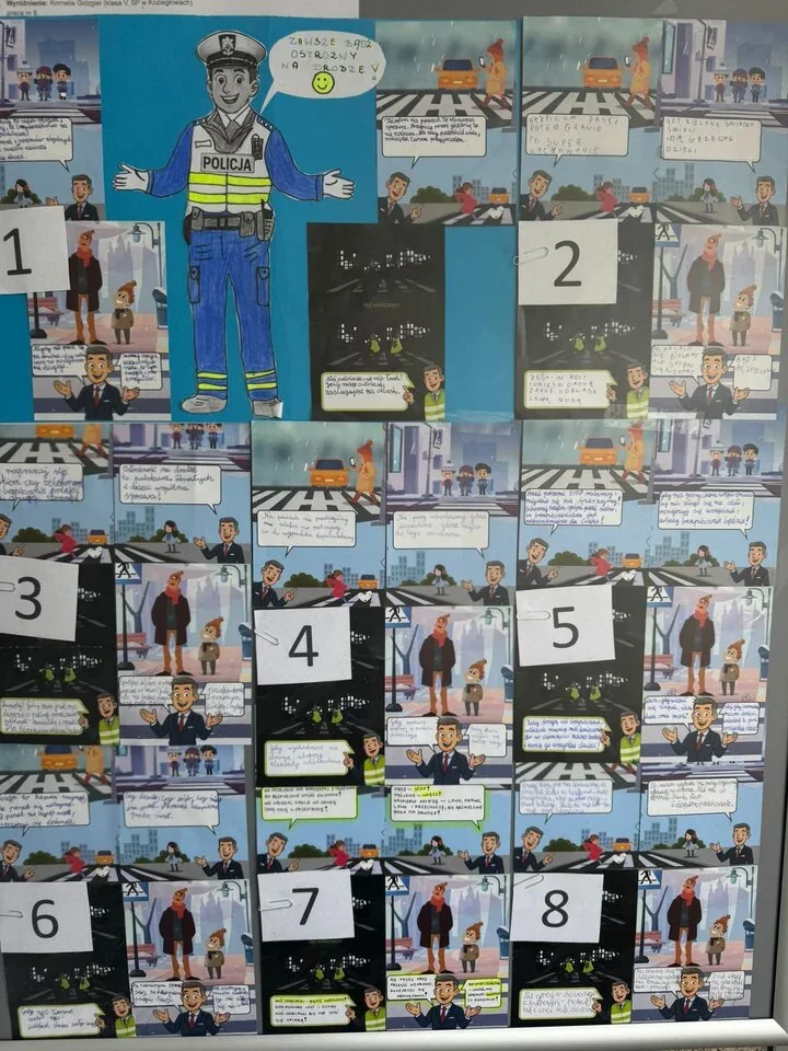 Jury brało pod uwagę przede wszystkim to, czy porada była zrozumiała, dobrze dopasowana do wieku autora i trafiała w temat bezpieczeństwa. Właśnie dlatego zwyciężyły nie tylko najładniejsze graficznie prace, ale takie, które potrafiły krótko i jasno powiedzieć coś ważnego o ostrożności, przechodzeniu przez jezdnię czy zachowaniu na drodze.