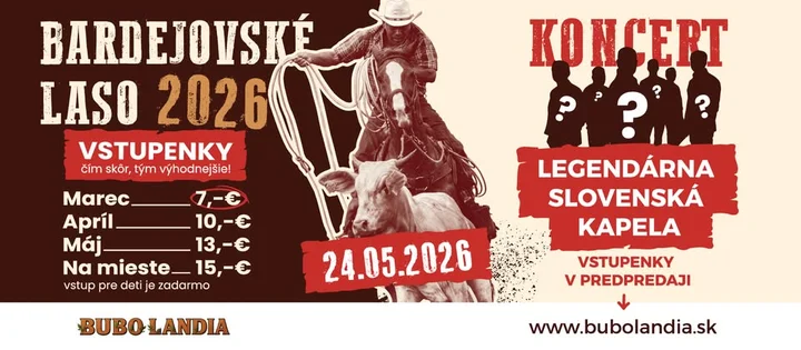 Bardejov w maju zamieni się w prawdziwe westernowe miasteczko Bardejovské Laso 2026 a Výstava koní to impreza, na której spotykają się adrenalina, konie, muzyka i luźna, rodzinna atmosfera — wszystko w jednym dniu. Profesjonalne pokazy rodeo, jazda konna, atrakcje dla dzieci i klimat rodem z Dzikiego Zachodu sprawiają, że to jedno z tych wydarzeń, które po prostu warto mieć na radarze.