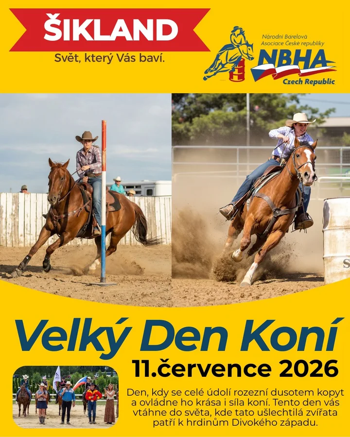 W dolinie Šikland zabrzmią kopyta i zrobi się prawie jak na Dzikim Zachodzie: od porannych pokazów jeździeckich po wieczorny pokaz ognia — VELKÝ DEN KONÍ zapowiada się spektakularnie. W programie są zarówno pokazy profesjonalistów, jak i występy miejscowego oddziału jeździeckiego, a całość doprawiona zostanie paradą aktorów, kaskaderów i zwierząt. Warto przyjść!